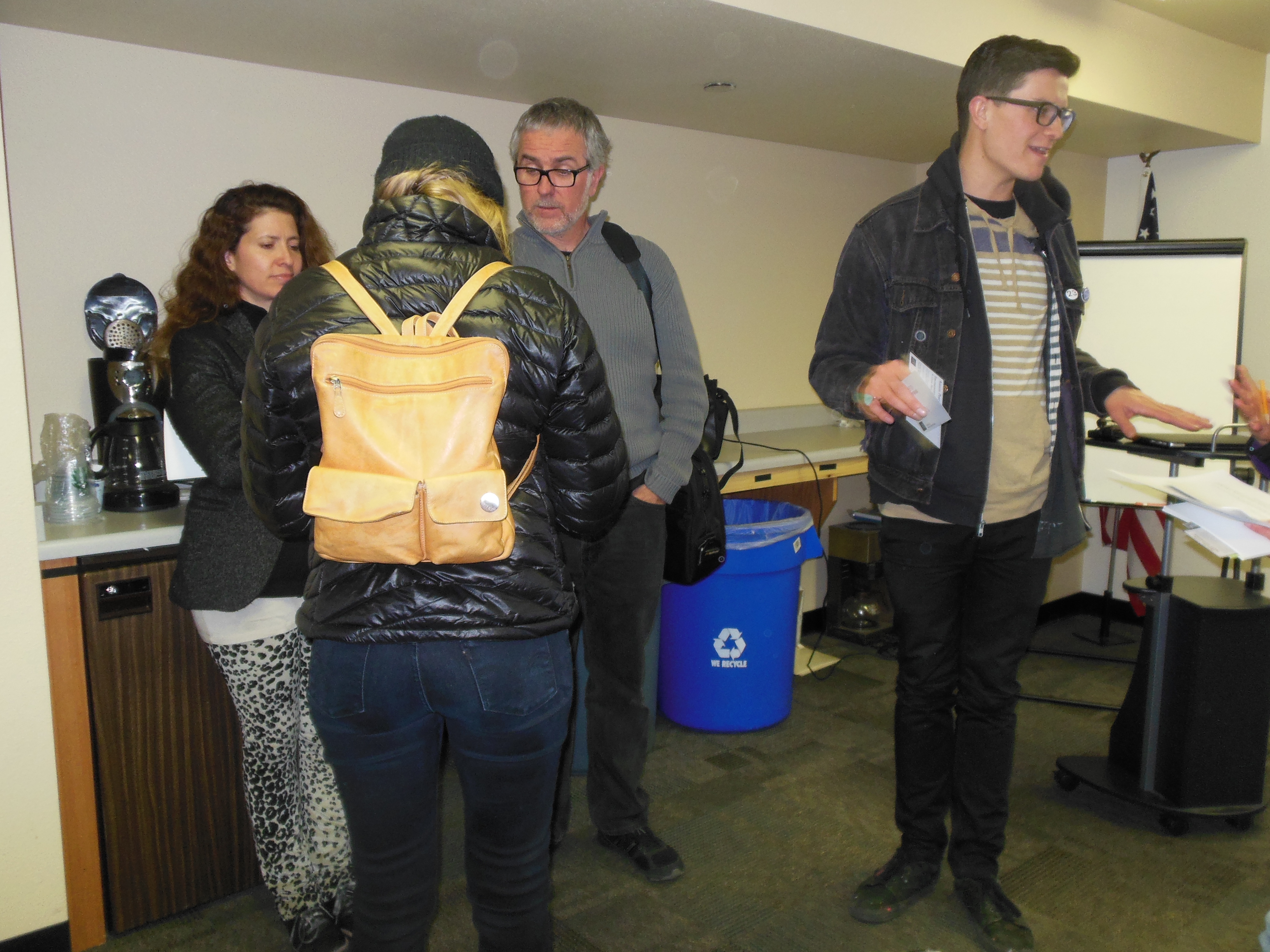 ° 4rd image: post talk visiting at the BRIC with artists (l-r) Erika Harsch, Sarah Lillegard (back to camera), Joe DeLappe, Austin Pratt