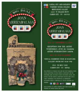 Carson City. The show opens on May 15, 2024; the gallery is open to the public, Monday through Friday, 8am – 7pm. The artist’s reception will take place on Wednesday, June 26, 5 – 6:30pm; the artist’s introduction is at 5:30. Watch the Nevada Neighbors interview with Joan here: https://youtu.be/-FGs5P6qqyM?si=5ICgWX5wmRl8Cy1B
