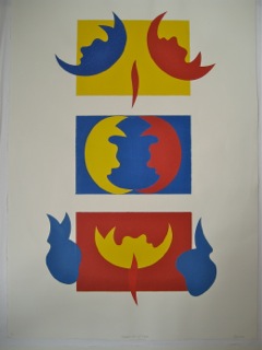 Carol Brown’s prints, admittedly inspired by Matisse, are a large series of collages in bright