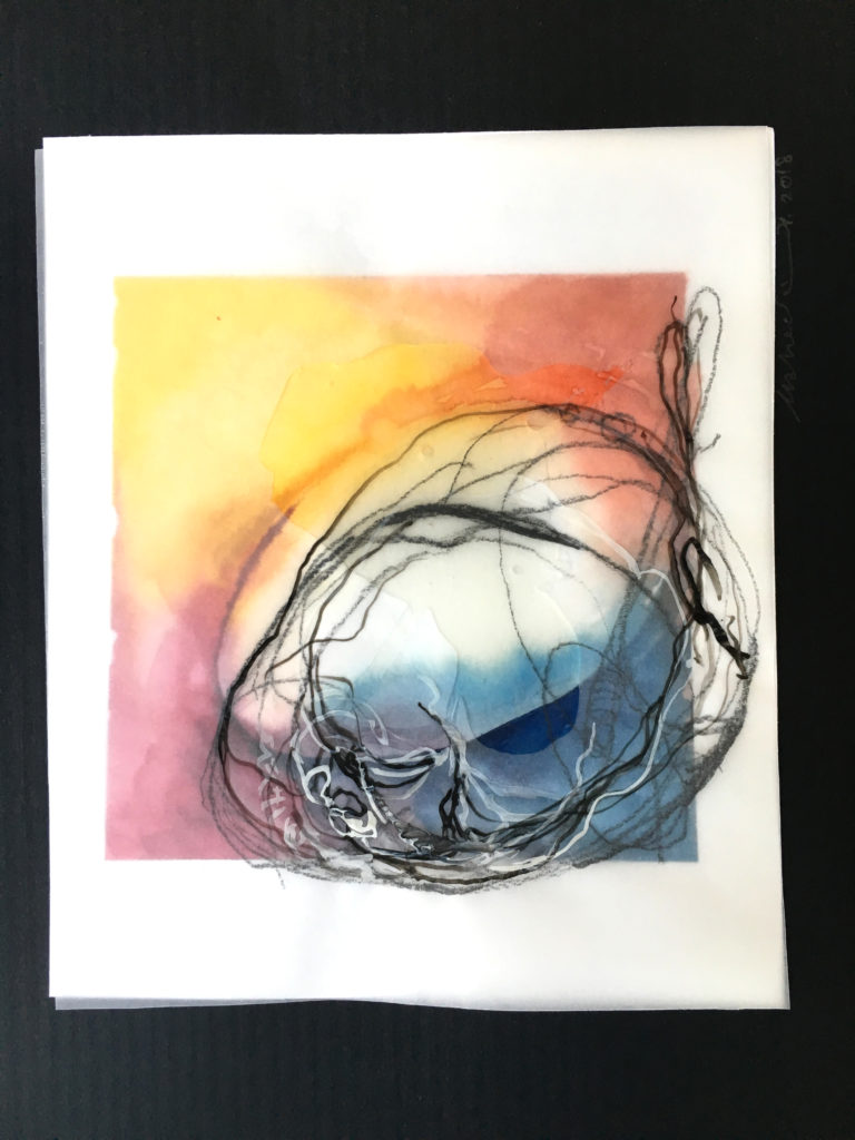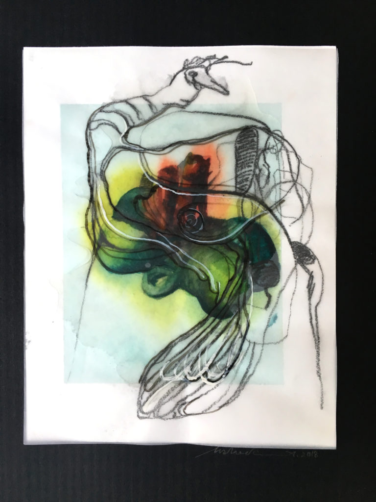 Mahedi Anjuman, “Encounter 6″, mixed media, 2018, 11″x8”