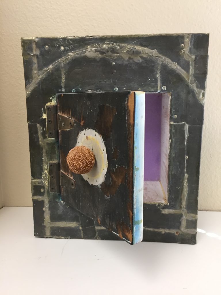 Michael Greenspan; wood box with lead and paint and Sycamore seed pod; 13″x11″x5.5″; no date