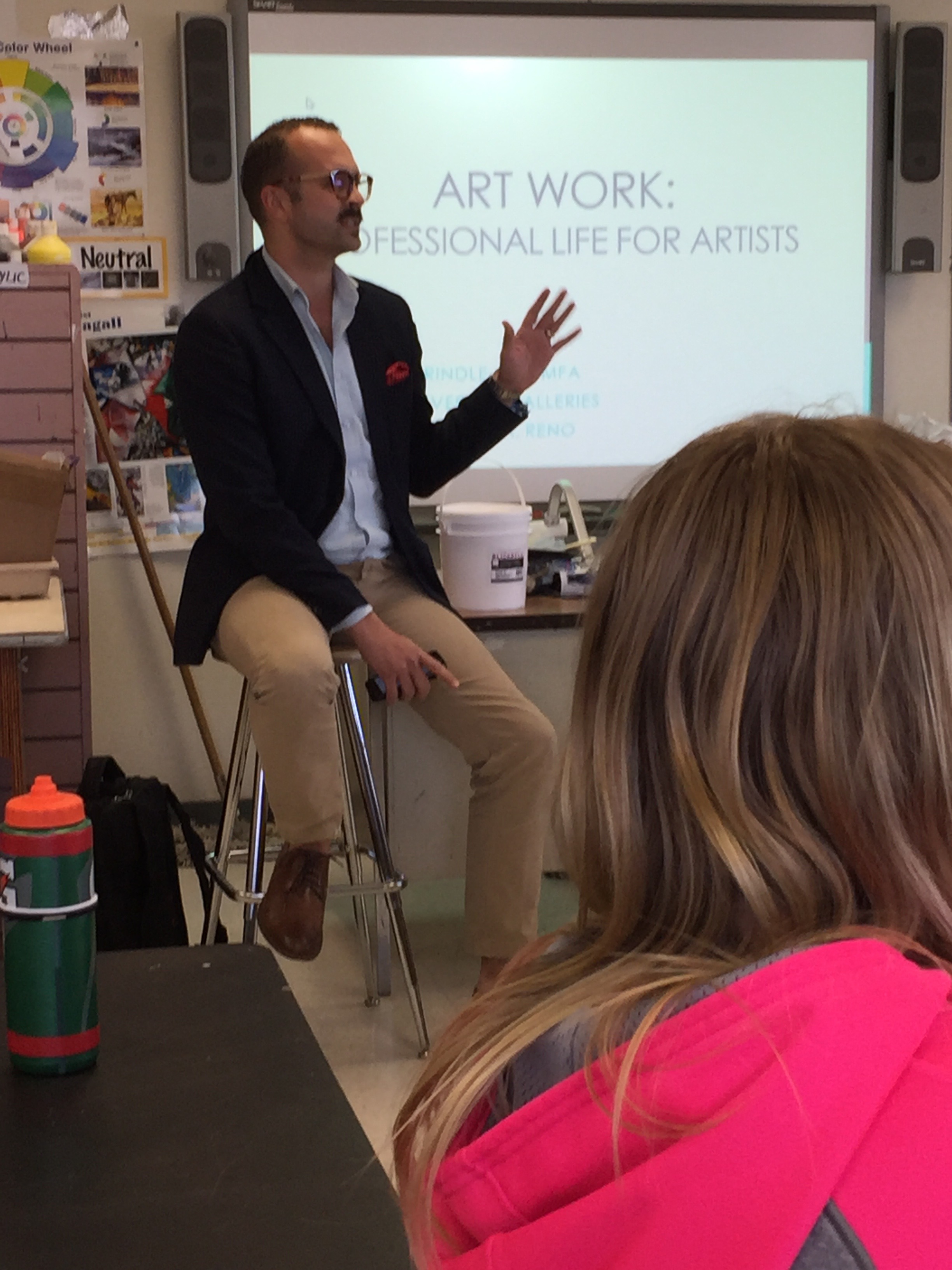 Nevada Neighbors speaker Paul Baker Prindle giving his talk, “Art Work: Professional Life for Artists,” to Dayton High art students, Dayton, NV, 3/24/16