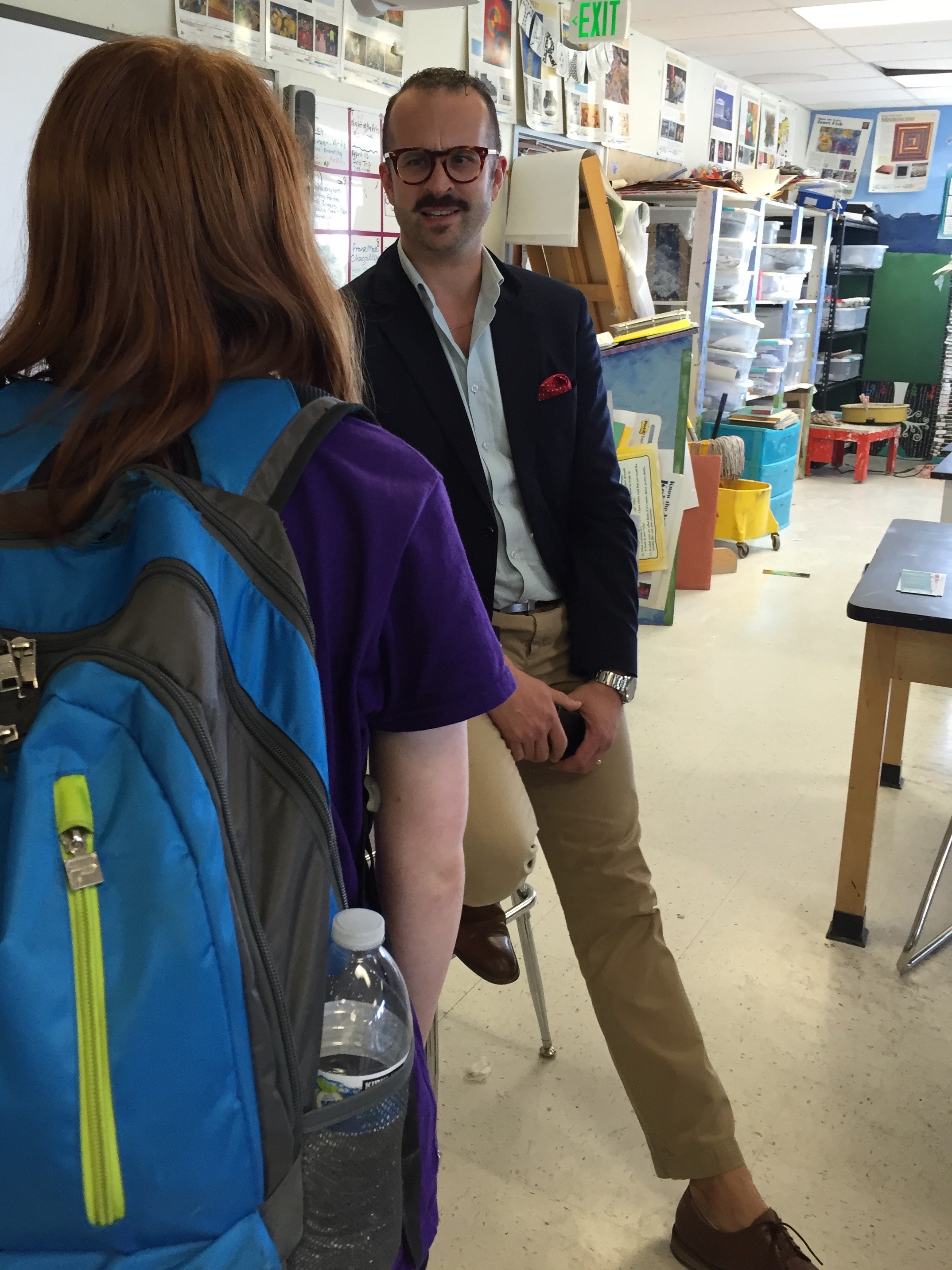 Douglas High art chair, Kelley Yost, with Jeff Hantman following his talk to 90 DHS students, Minden NV, 2/5/16