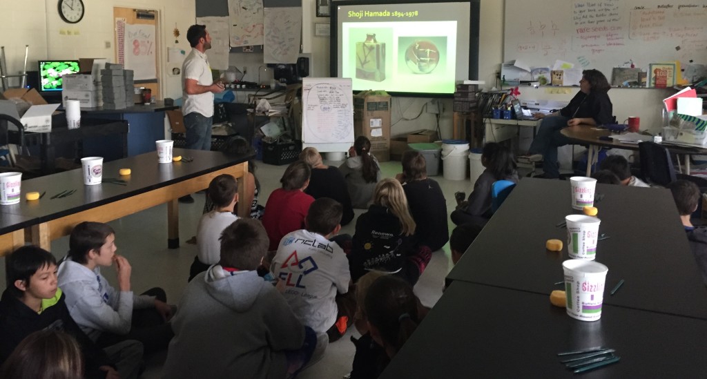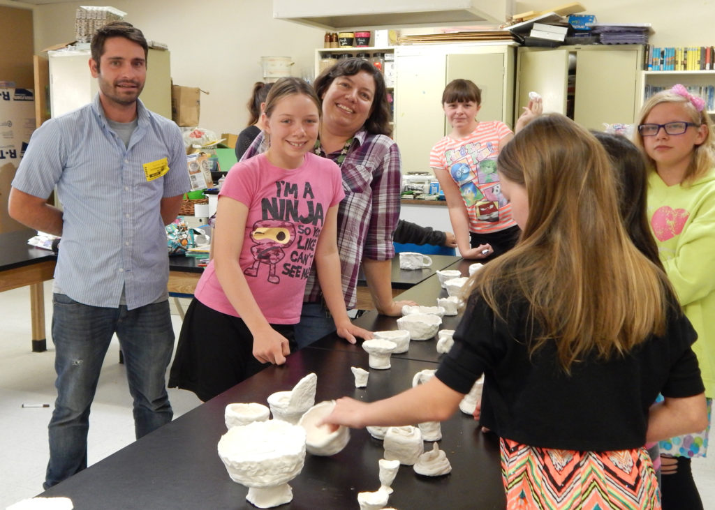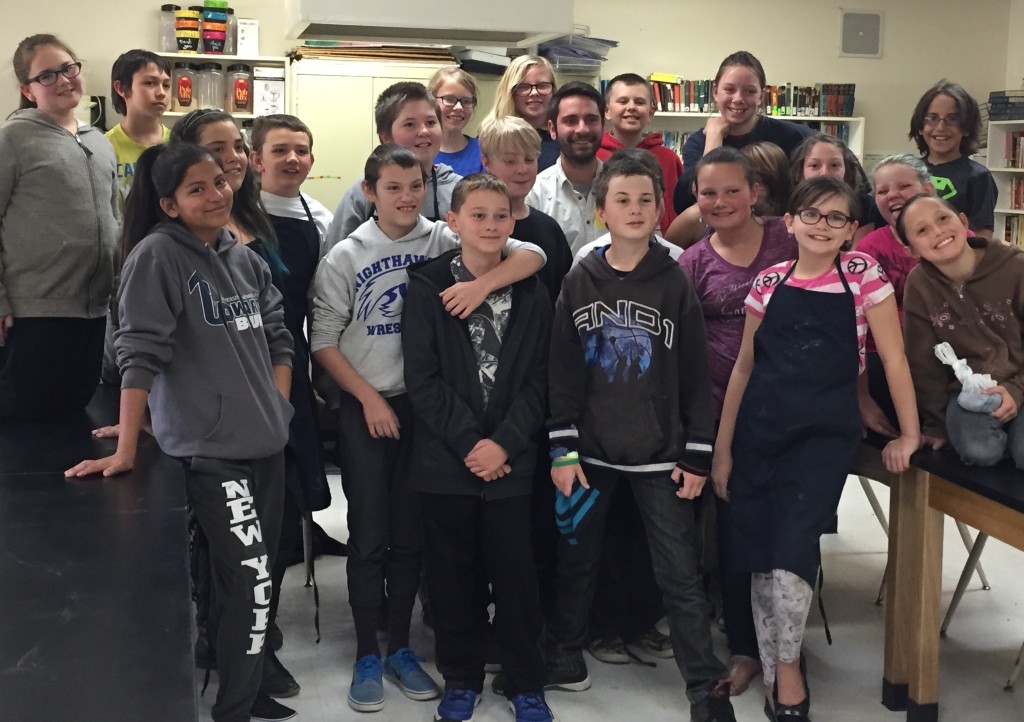 Tom Drakulich’s ceramics workshop in progress, Silver Stage Elementary, Silver Springs NV, 3/25/16; with support from UNR’s Art Department