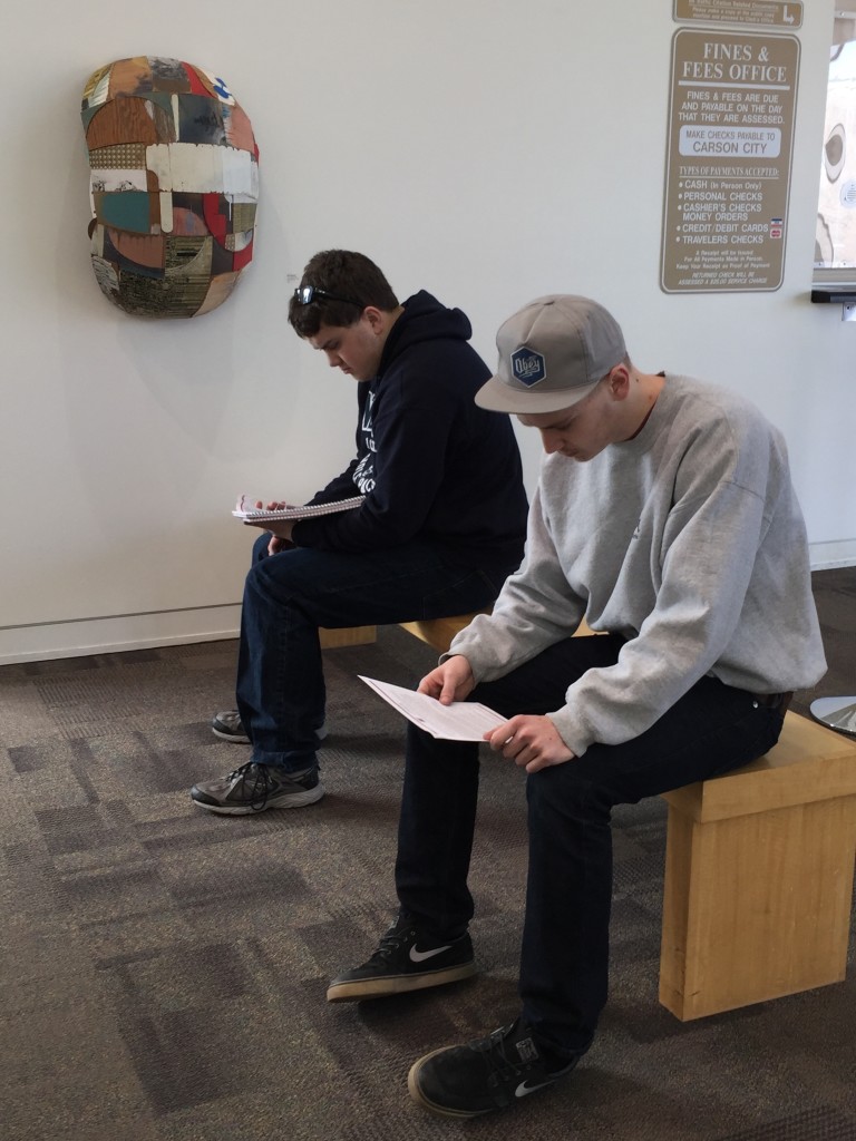 WNC Visual Foundations students reading Cherie Turner’s essay on Jeff Hantman’s show, CCAI Courthouse Gallery, Carson City NV, 2/24/16