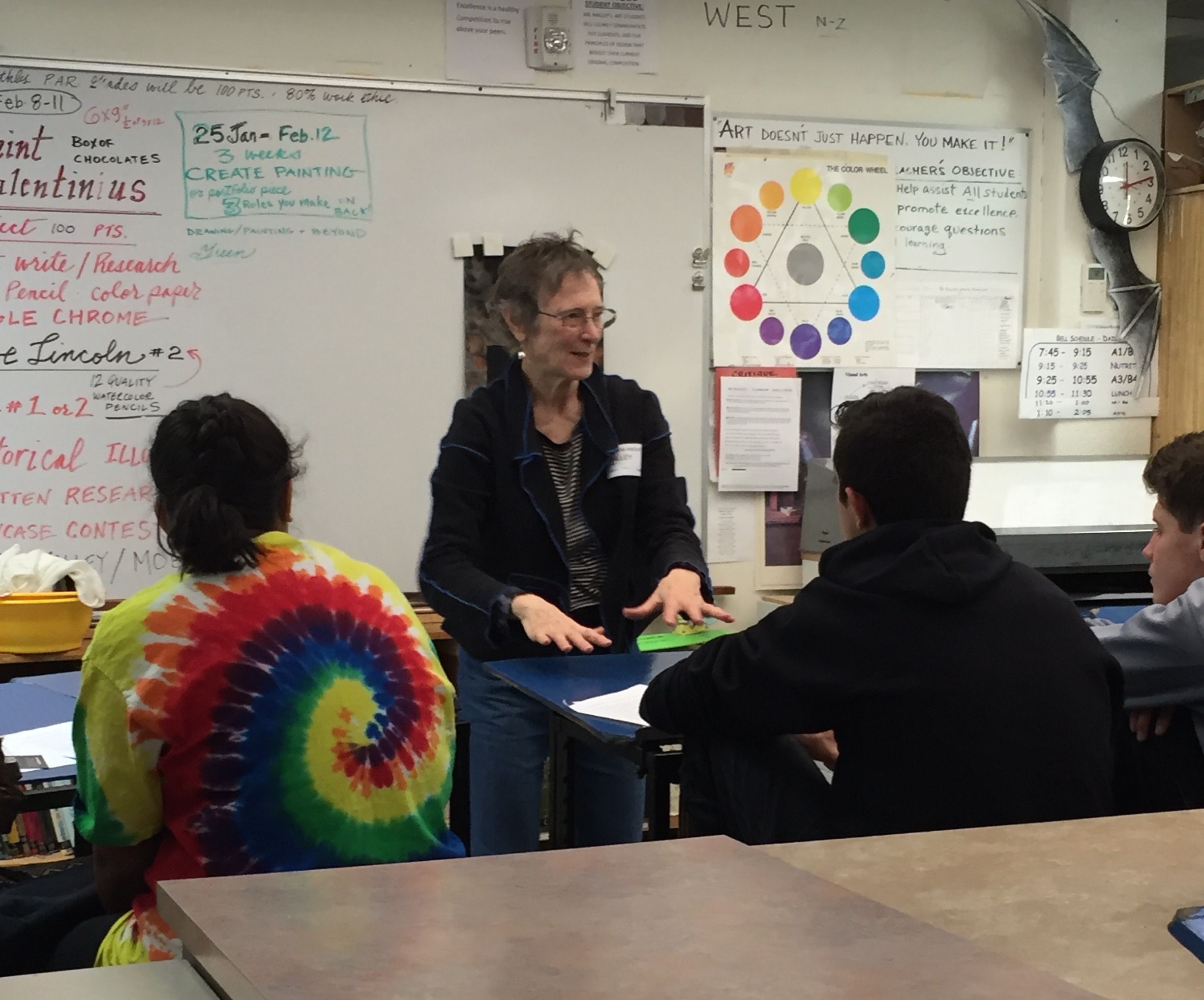 Claudia Knous talking about her art, Carson High, Carson City NV, 2/9/16