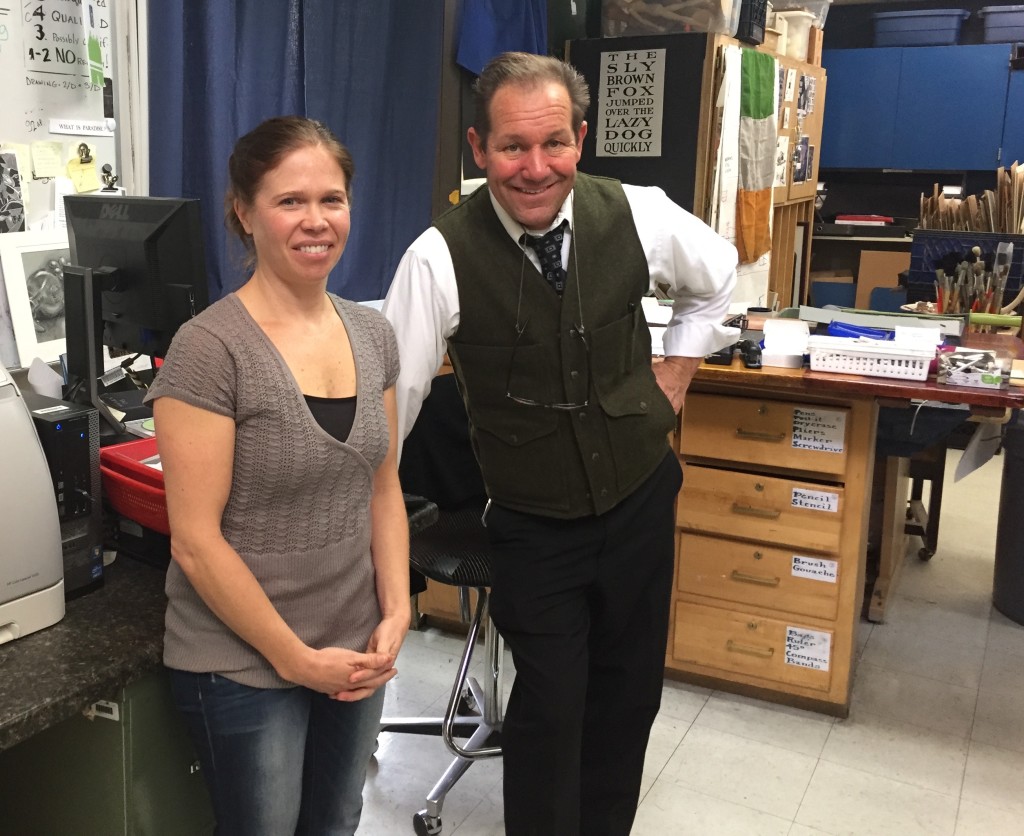 After her talk, Katie Lewis with Carson High art teacher Mike Malley, Carson High, Carson City NV, 12/8/15