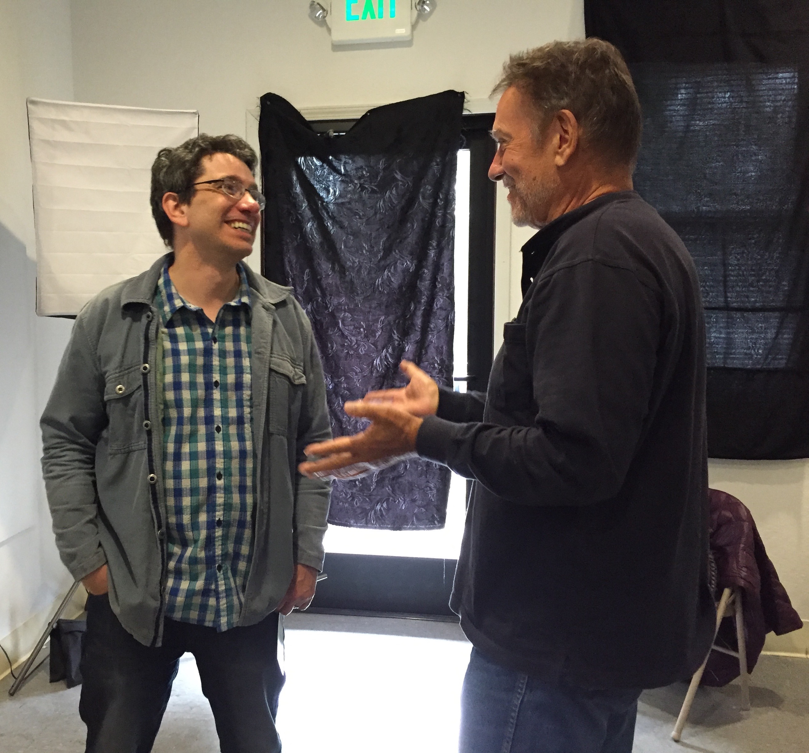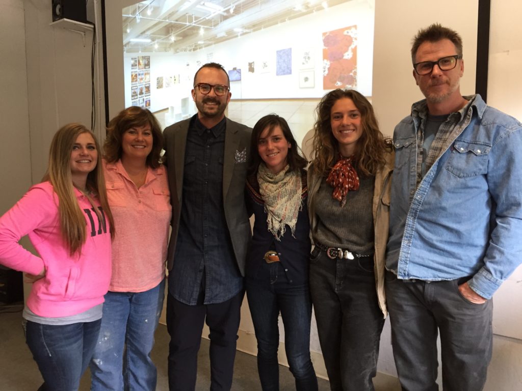 Paul Baker Prindle after his talk with Douglas High Art faculty [l-r] KC Brennan, Zoe Shorten, Kelley Yost, 4/22/16