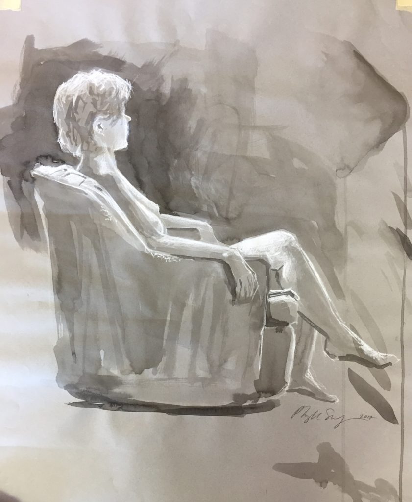 Untitled [figure study], Phyllis Shafer, mixed media, image: 30″x 18″, 2017, framed