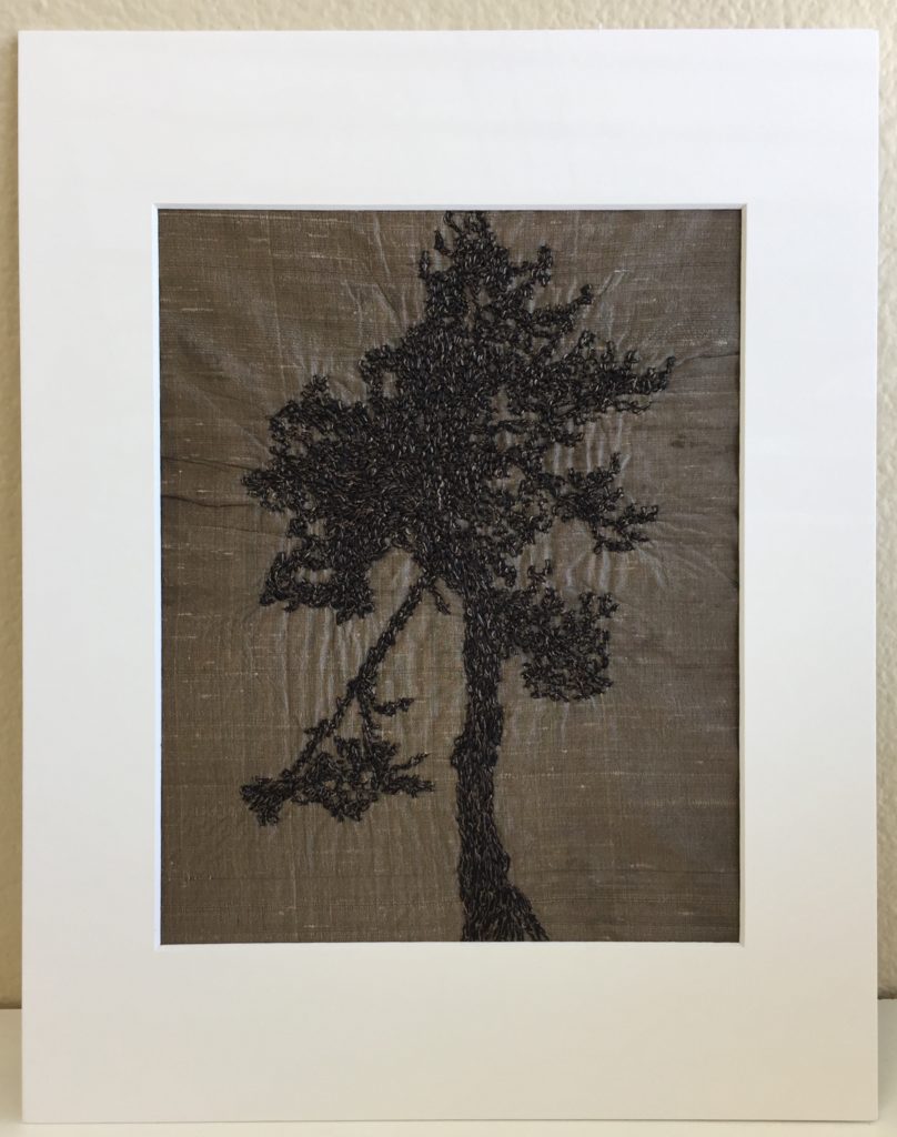 “Tree”, Paula Chung, silk embroidery on hand-dyed silk, 10″x8″, 2014