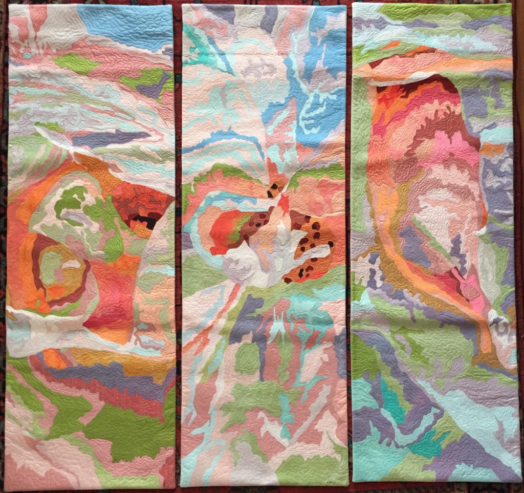 “White Rose” triptych, Paula Chung, hand-dyed silk quilted, 44″x45″, 2010