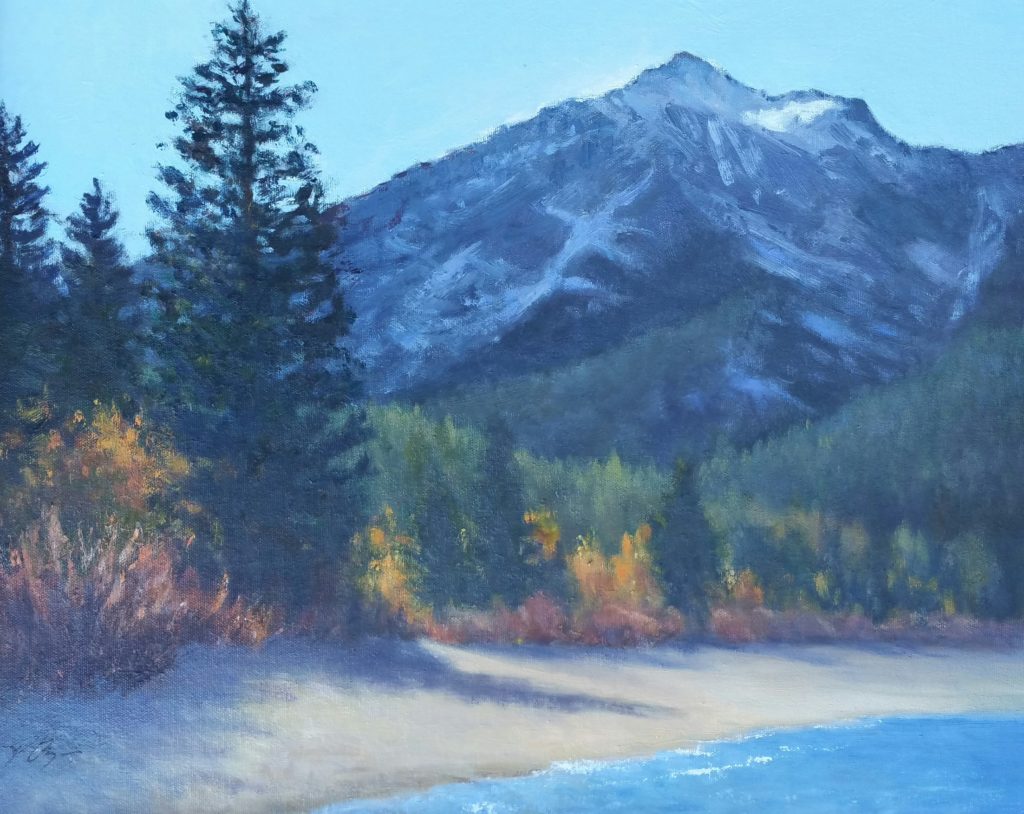 “Afternoon, Kiva Beach”, Peggy Borgman, plein air, oil on archival panel, 16″x20″