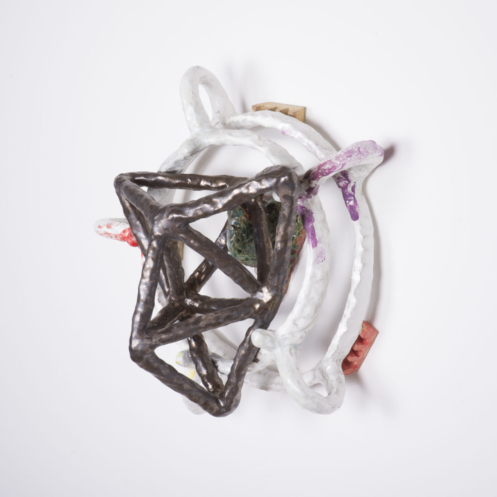 “Molecule”, Karl Schwiesow, ceramic, 22″x11″, 2017