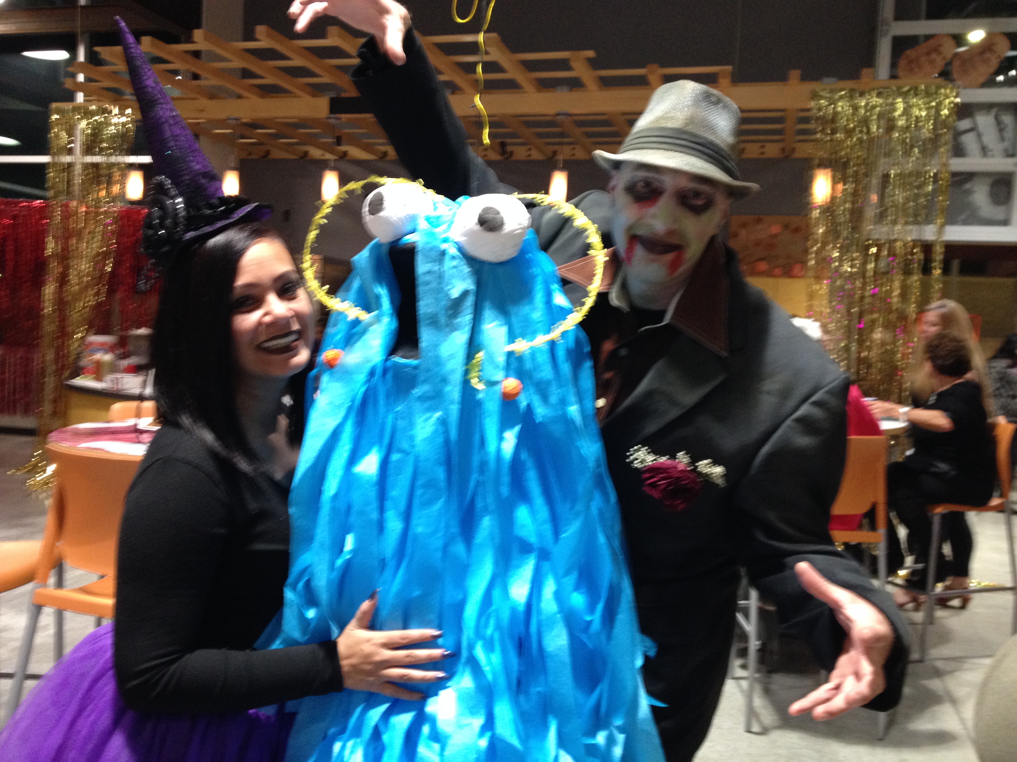 Barbara D’Anneo and Mark Salinas, wearing his pinata costume.