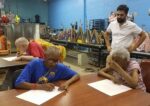 center image: Tim Ortiz teaching art