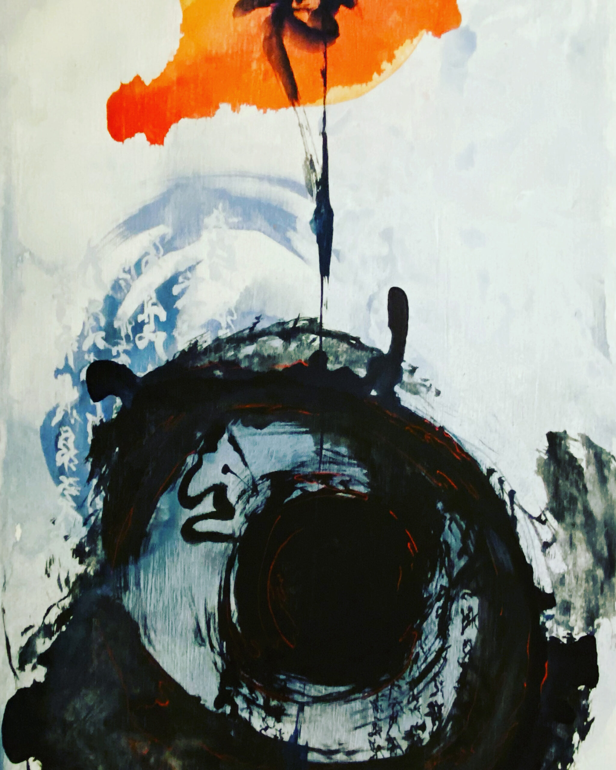 Growing up surrounded by Taoist philosophy and Chinese art instilled in Leaf a fascination for the calligraphic form. This influence comes from his father who was an artist and professor of art. His childhood was punctuated by frequent trips to San Francisco where the fog and mist of the bay area created a fascination with that sense of isolation and visual filtering the fogs create. He smiled, “Growing up eating my noodles with chopsticks gave me a mixed sense of perspective to the world.”