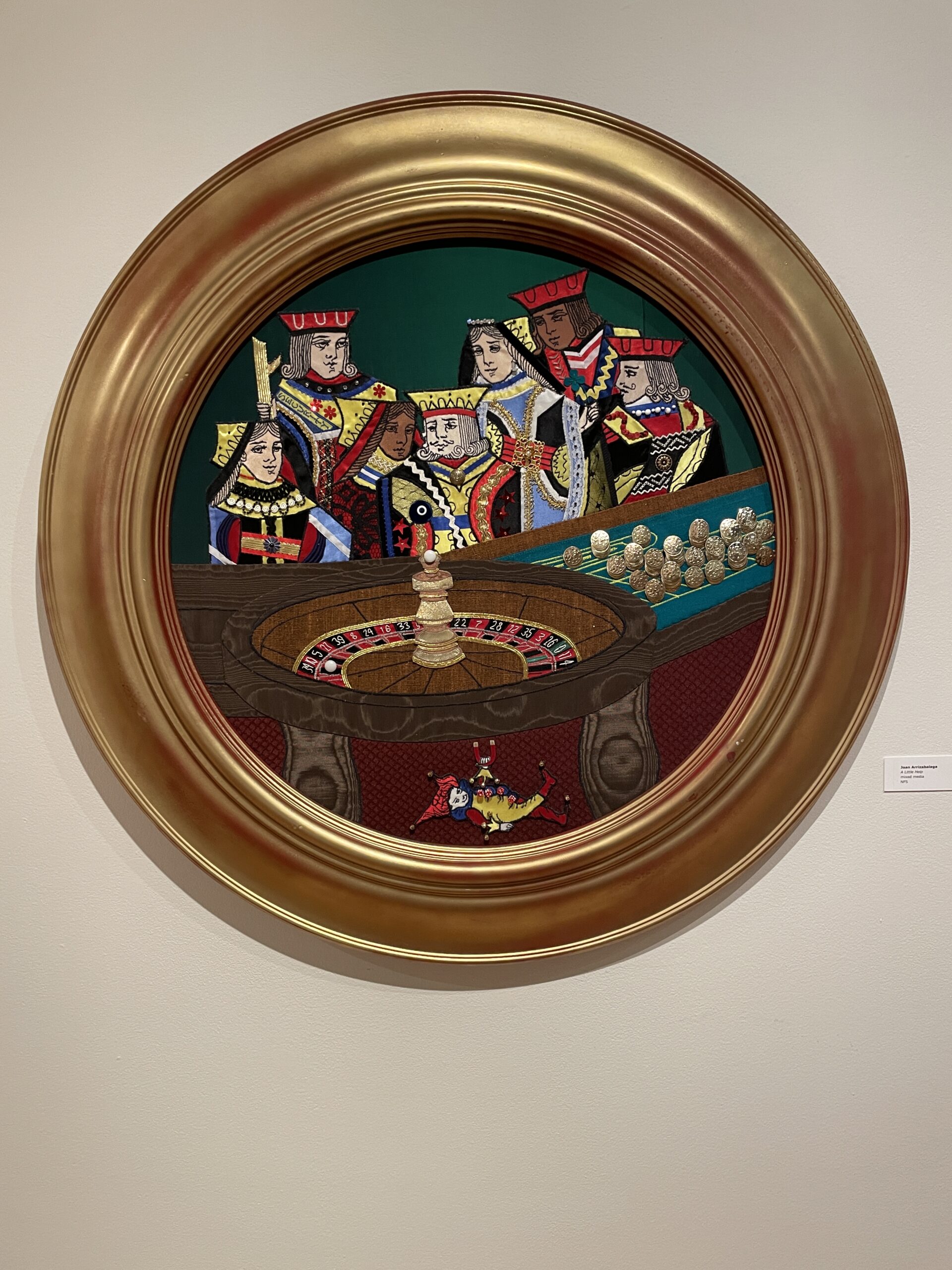 “ ’The roll of the dice’, ‘easy money’, ‘the luck of the draw’, ‘manna from Heaven’, and ‘dealer’s choice’ are all expressions that I use as metaphors in my art. I like the familiar faces of the playing cards for my characters because they are subconsciously recognizable even out of context. The Joker is very important. He has many parallels, like the trickster in Native American lore.