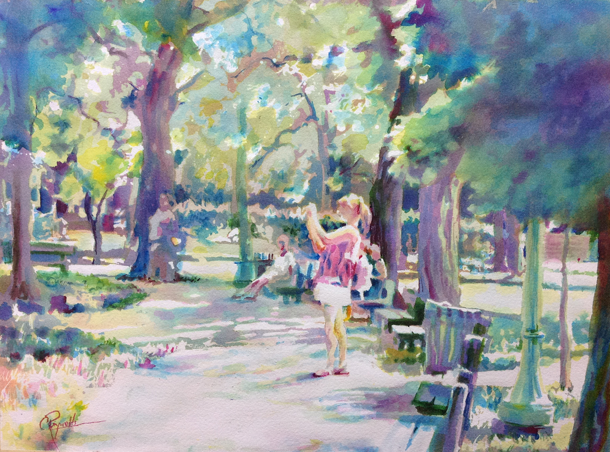 2nd image, left: Colleen Reynolds; Capturing the Park watercolor, 11″x15″, 2021