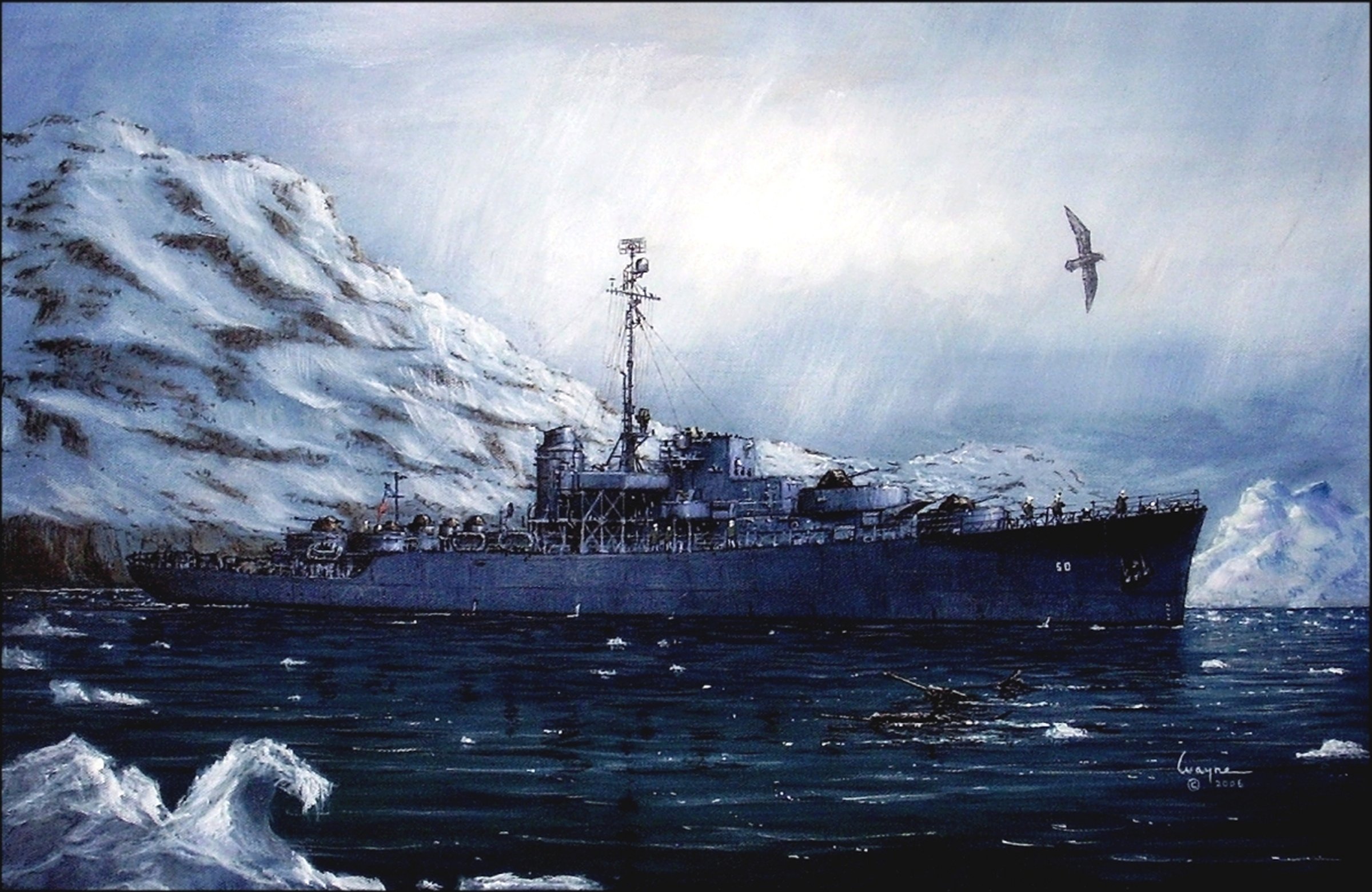 right image: Wayne Scarpaci, USS Carson City, acrylic on canvas