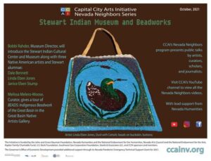 beadworks and their histories as Stewart alumnae. The Capital City Art Initiative’s Nevada Neighbors series presents artists Dale Bennett, Linda Eben Jones, Janice Eben Stump, and curator Melissa Melero-Moose along with museum director, Bobbi Rahder. The public is invited to watch the talk online at https://youtu.be/-IHm2Ey7wZ4