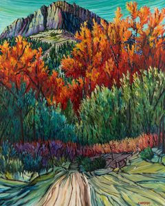 Basin and Range presents color-filled landscape paintings of the artist’s personal view of the Sierra. Her work refers to the time of day that Webb calls “Ante Sidera”, Latin for “before the stars”. She focuses on light, contrast, and texture, with an emphasis on “saturated color”. As Maynard Dixon’s son, Daniel, said about his famous father’s paintings, “He see colors that no one else sees” — also a fitting description for Webb’s canvases.