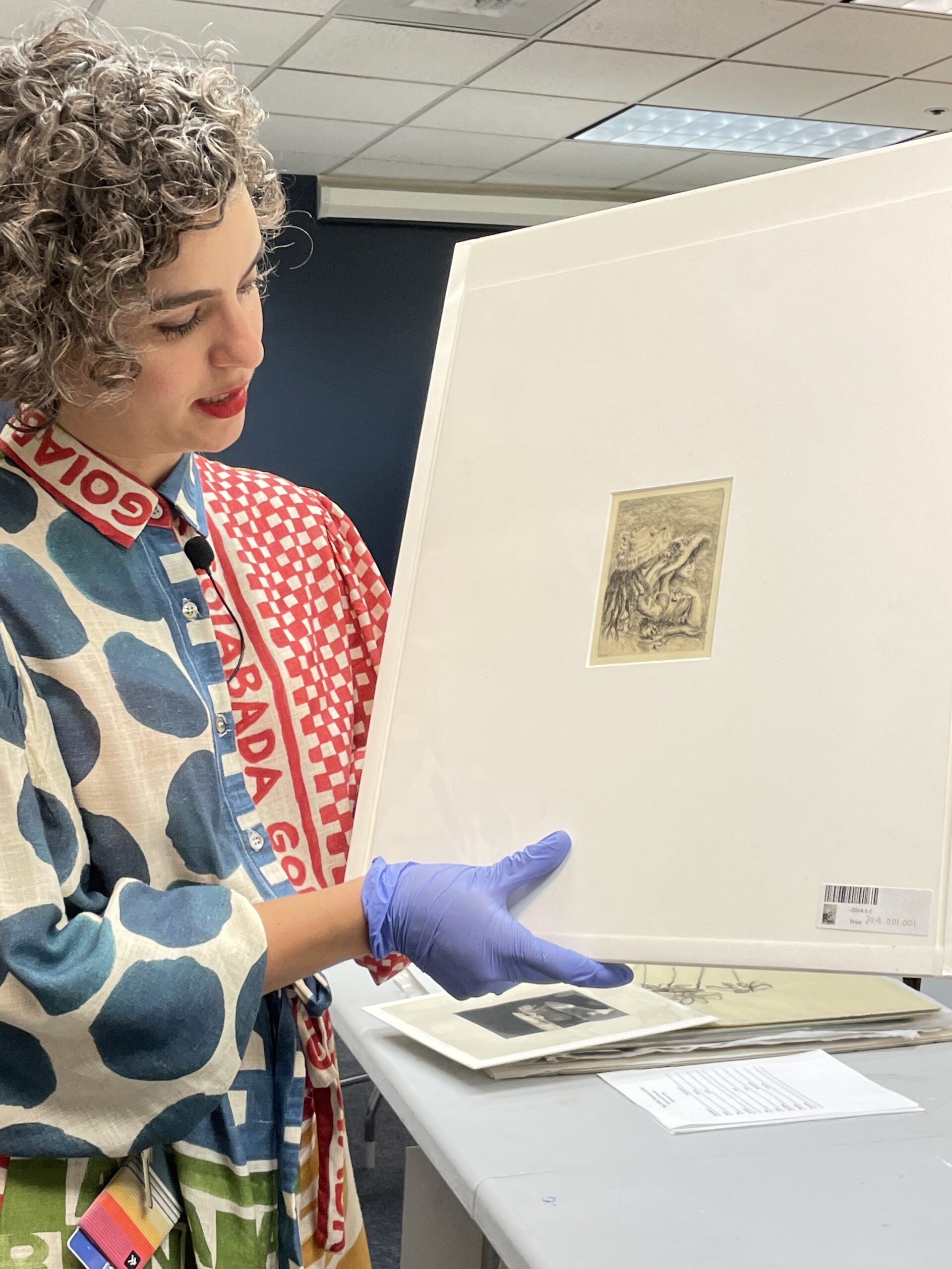 top image, right: Vivian Zavataro sharing a item from the Lilley’s collections, 2022