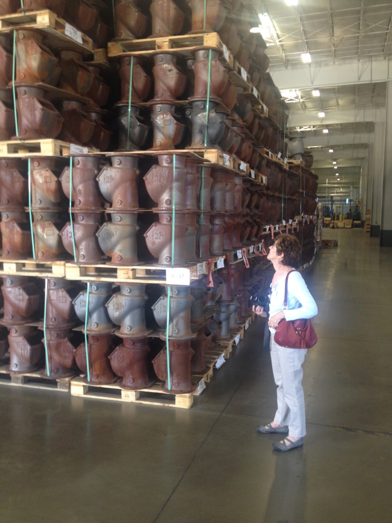 Glenn Clemmer explaining dimpled stainless steel to Gary and  Joann Sherrin