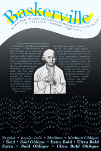 left image: Sarai Jauregui-Rivas, Baskerville, graphic design poster, 36″x 24″, 2022